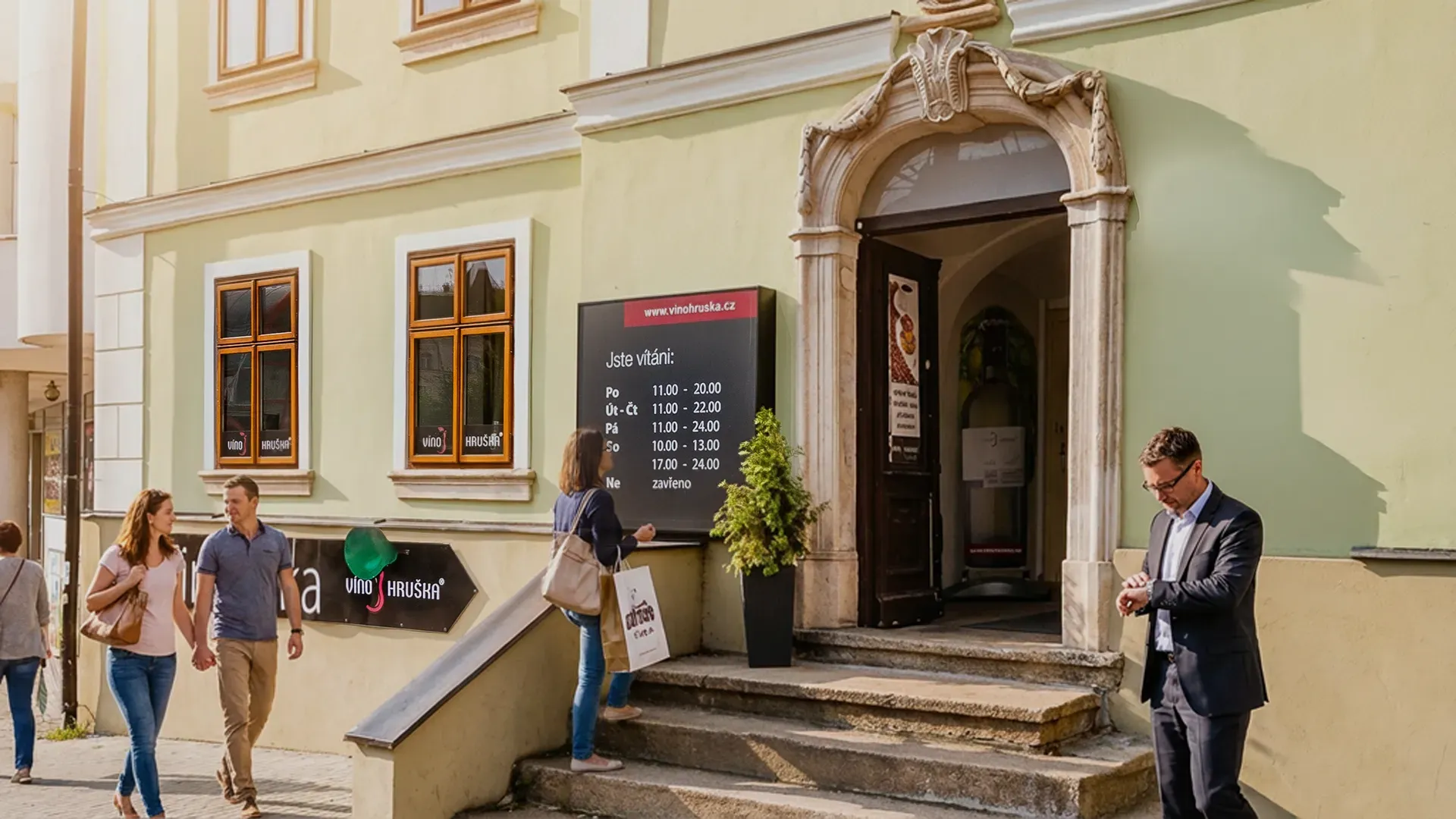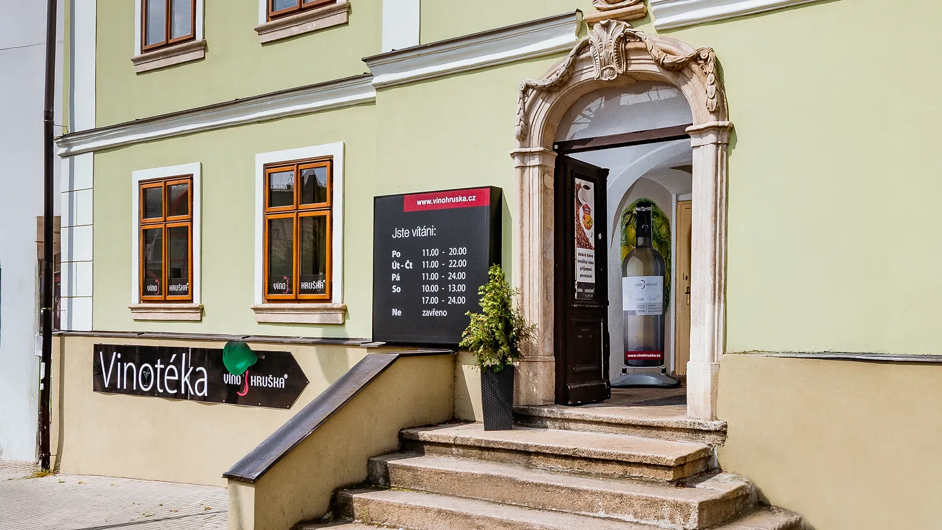 Vinotéka VÍNO HRUŠKA Liberec – v legendárním Domě u Zeleného stromu. Moravská vína, delikatesy, žulový sklep plný pohody a kulturní večery. Přijďte na Revoluční 131 za nezapomenutelnou chutí.